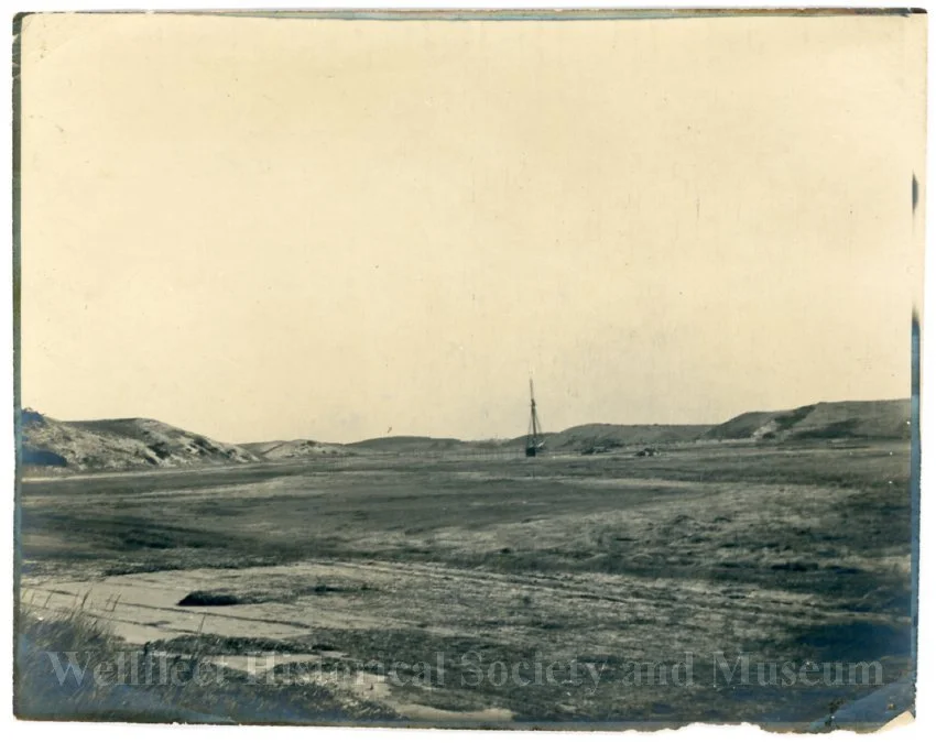 Southwesterly-looking view of the dike during early phase of the dike construction in 1909. (Photo courtesy of the Wellfleet Historical Society Museum)